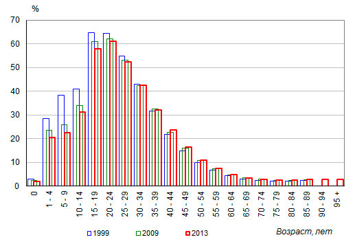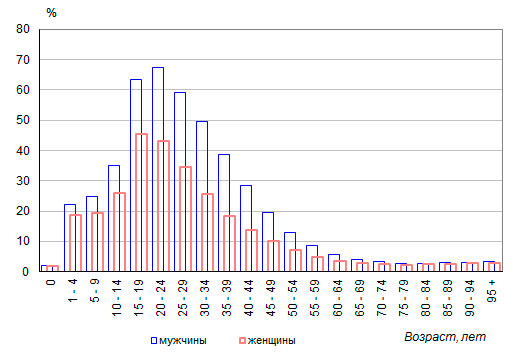 лет и старше она незначительна, составляя около 2%. В возрастах