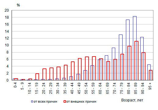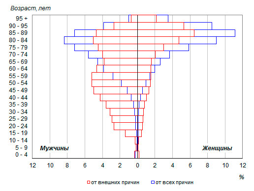 причин по возрастам и полу. Смертность мужчин от внешних причин