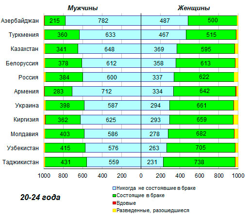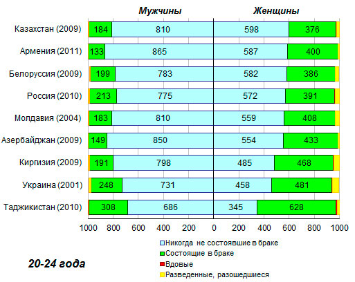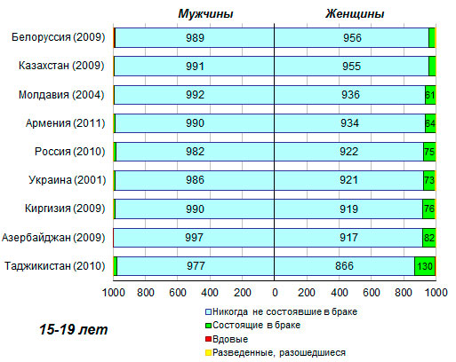состоявших в браке, варьировалась от 500 на каждую тысячу в Азербайджане