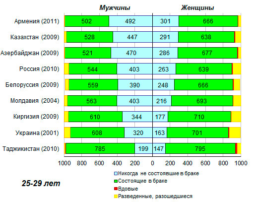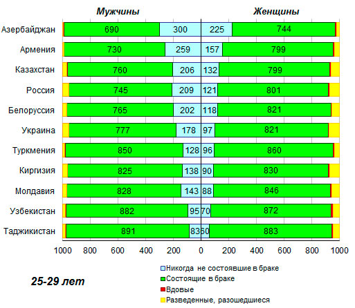 25-29 лет в Азербайджане до 883 в Таджикистане, а среди их сверстников
