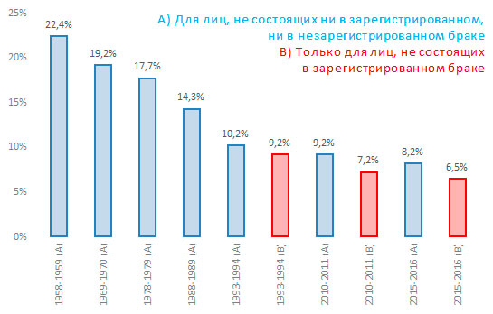 НИИ семьи, 1996, с. 39; Синельников А.Б. Браки и разводы // Население
