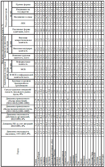 (табл. 1). Наименьшее снижение занятости наблюдалось в крупнейших