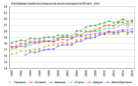 в возрасте 65 лет составляла от 16,2 года в Болгарии до 21,8 года