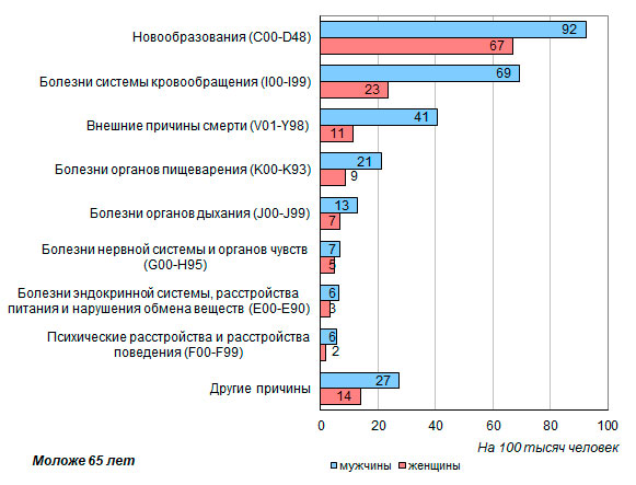 от всех причин смерти в возрасте до 65 лет составил 210 умерших