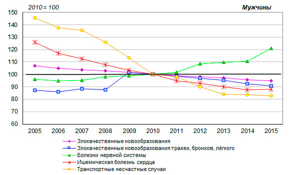 болезнь лёгкого). В целом же за период 2005-2015 годов смертность