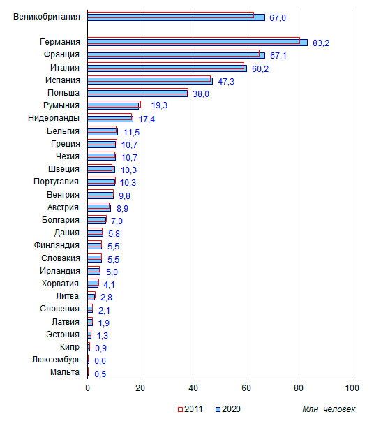 населения ЕС-27 на начало 2020 года) сосредоточено в четырех наиболее