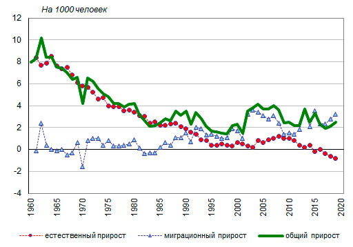 из страны, и наблюдается небольшой миграционный прирост (менее 1‰