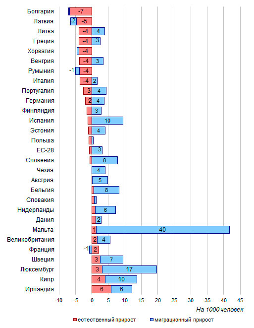 годах, стал единственным фактором роста населения ЕС-28 на фоне