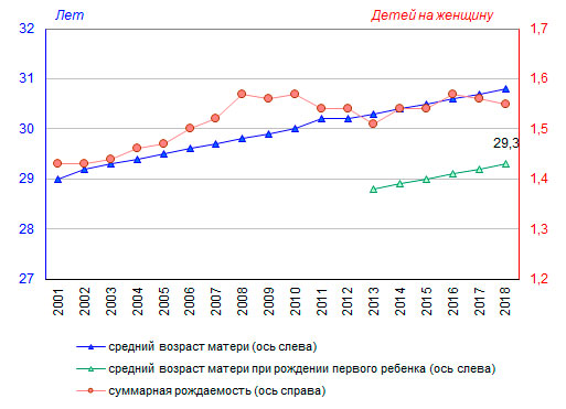 так и без нее). Средний возраст матери при рождении первого ребенка