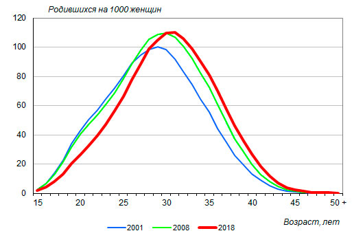 возраста в 2001 году) на возраст 30-31 года (110 в 2018 году). Наибольший