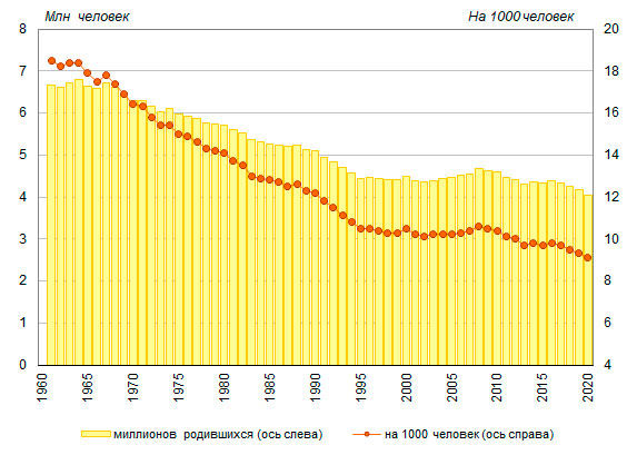 родилось по 4,2 миллиона человек, а в 2020 году – 4,0 миллиона человек