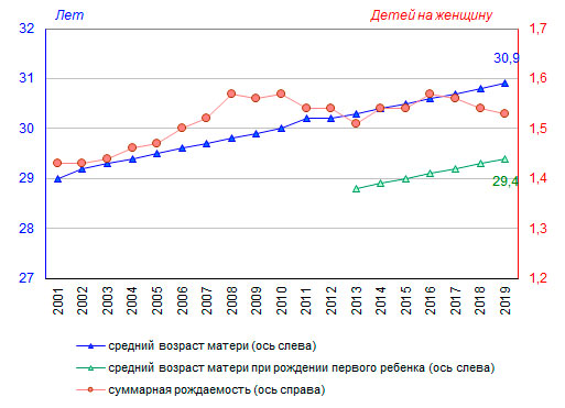 на фоне продолжающегося повышения среднего возраста матери при рождении