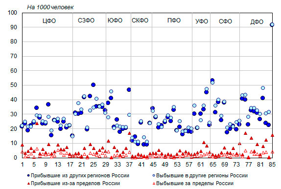 за счет миграционного прироста уже более 45 лет, то в регионах-субъектах