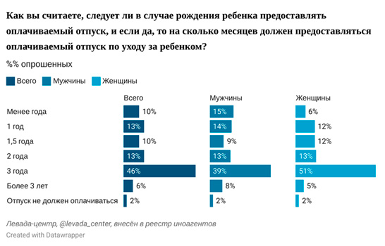 рождения ребенка. Однако мнения россиян о длительности такого отпуска