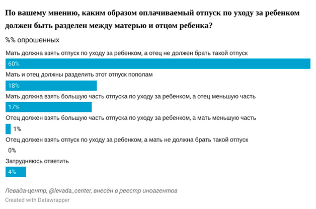россиян (60%) считают, что мать должна полностью взять весь отпуск