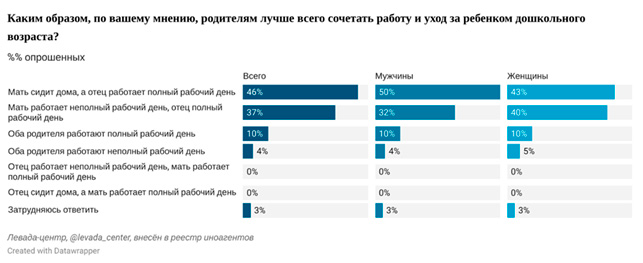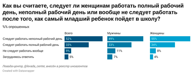 а мать работает полный рабочий день. Четверть респондентов не приемлет