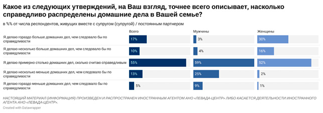 Таким образом, как и раньше, женщины больше мужчин занимаются домашними