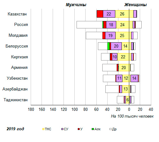человек), в остальных странах СНГ они не достигали уровня 5 на 100000