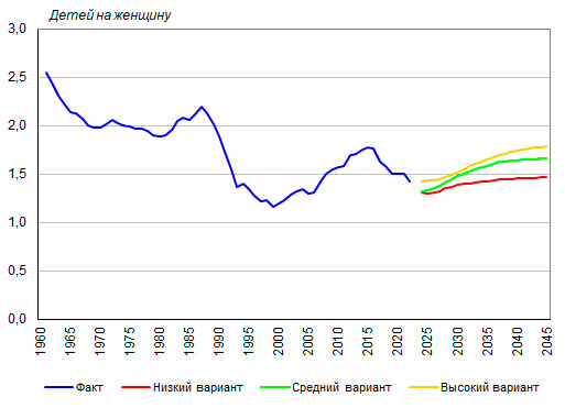 – до 1,464 в 2045 году, что ниже уровня начала 2020-х годов.