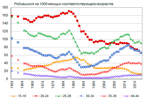 из-за более быстрого снижения рождаемости в возрасте 25-29 лет (до