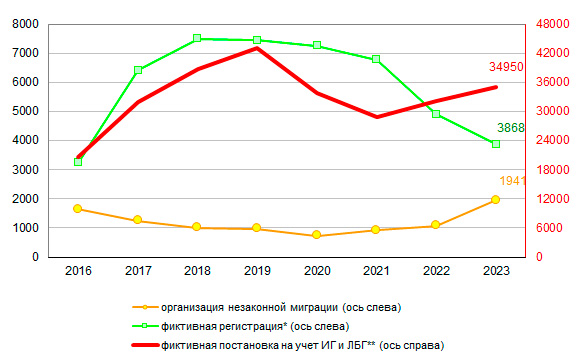 регистрацией (ст. 322.2 УК РФ), хотя в последние годы число таких