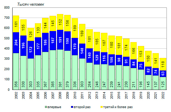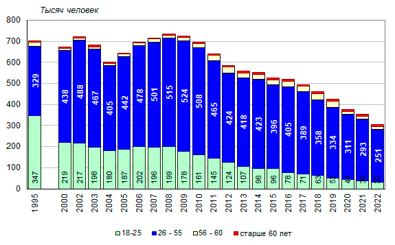 человек. В начале 2000-х годов она была в 5,1 раза больше (226 тысячи