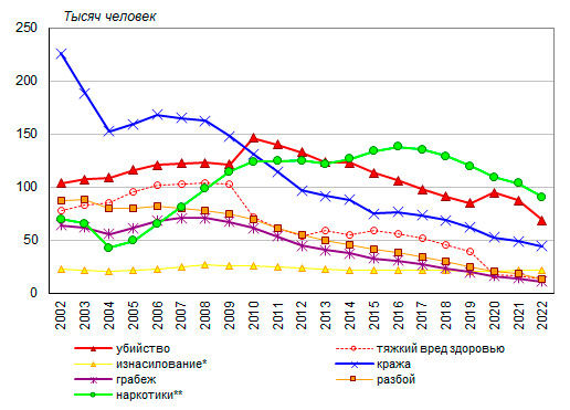 за убийство (104 тысячи человек). Доля осужденных за кражу среди