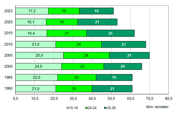 меньше, чем было в 1999 и 1995 годах (по 61 миллиону человек) (рис.