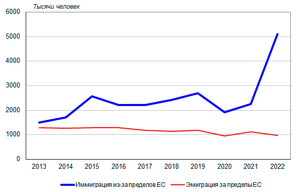 числа иммигрантов в страны ЕС-27 за 2022 год), но довольно значительная