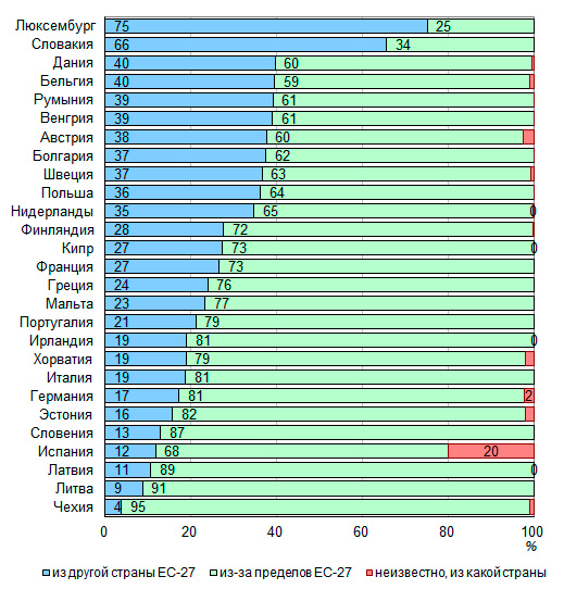 Так, доля иммигрантов из-за пределов союза составила в 2022 году