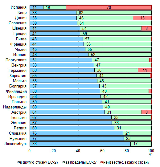 совокупное число эмигрантов из стран ЕС-27 увеличилось на 3%, но