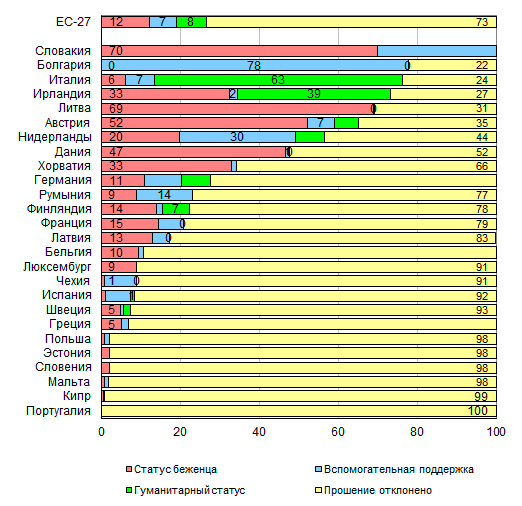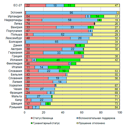 Остальные прошения об убежище (54%) были отклонены решением первой