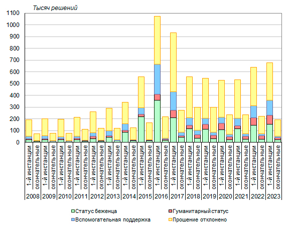 больше, чем в 2022 году (384 тысячи). Статус беженца и вспомогательный
