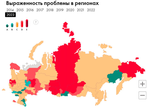 Оценку A получили регионы с низкой выраженностью проблемы, E - с