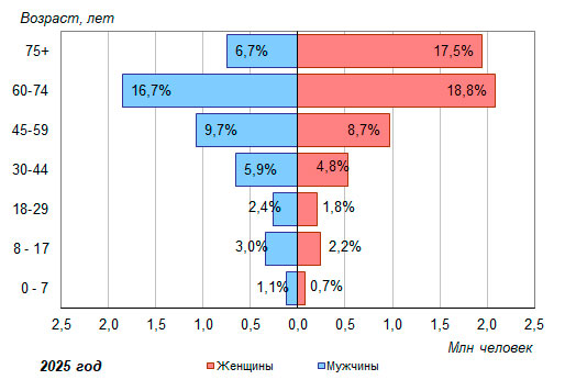 женщин в возрасте 18-57 лет (14,6%) и 2485 тысяч мужчин 18-62 лет