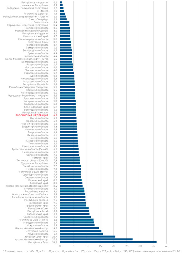 Жертвы умышленных убийств* (2023 г., на 100 тыс.