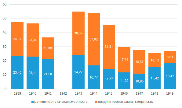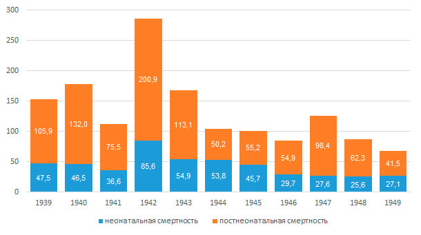 объяснить резкое падение уровня младенческой смертности в 1941 году.