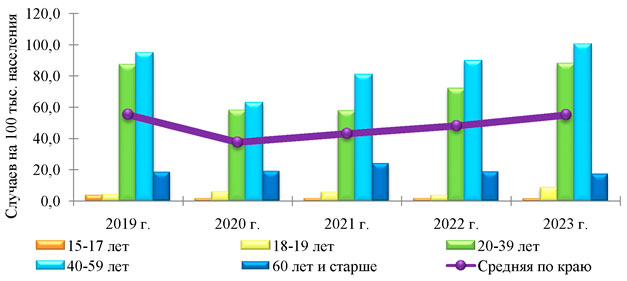 подросткового и взрослого населения Красноярского края, 2022-2023