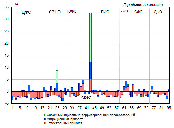 и Карачаево-Черкесии). Среднегодовые темпы прироста городского населения