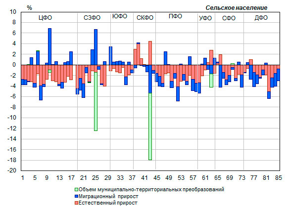 в 69 регионах. Ее величина варьировалась от -0,3% к численности