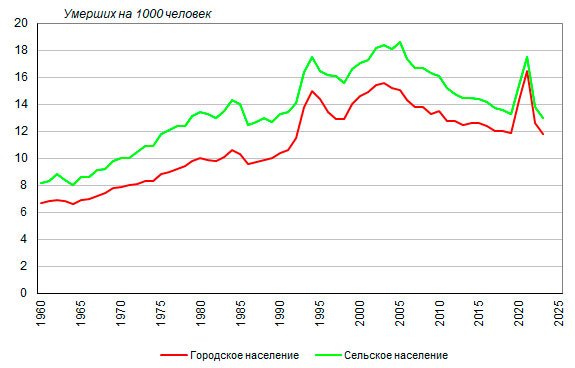 коэффициент смертности сельского населения был на 8% выше, чем городского