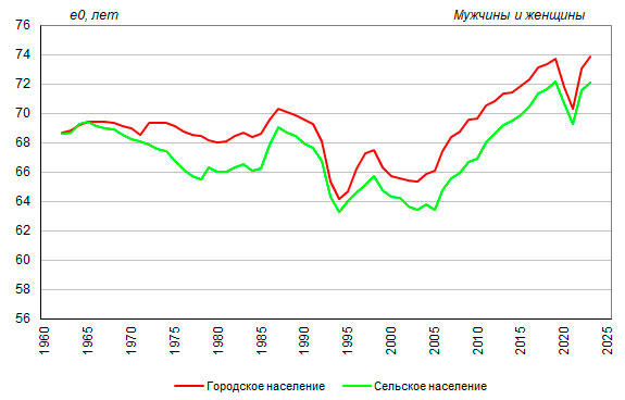тогда как у сельского населения на 2,9 года (до 69,3 года). В то