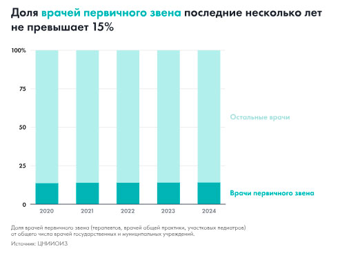 больниц, поликлиник и диспансеров. Таких врачей, по данным ЦНИИОИЗ,