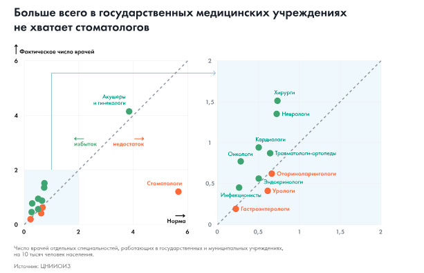 стоматологов в 5 раз меньше нормы. Не хватает также урологов и гастроэнтерологов,