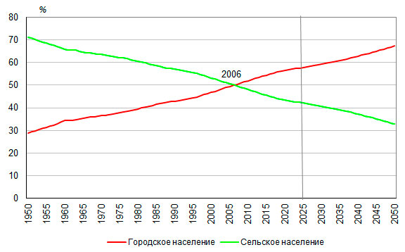 По прогнозу ООН, к 2050 году доля жителей сельских территорий