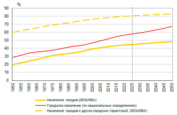 населения мира в 1950 году до 57,8% в 2025 году. В 2006 году, как