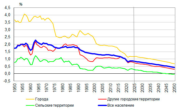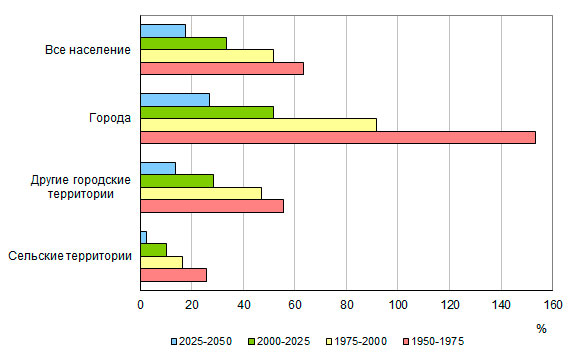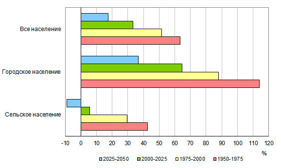 прирост городского населения будет в 3,1 раза ниже, чем за 1950-1975