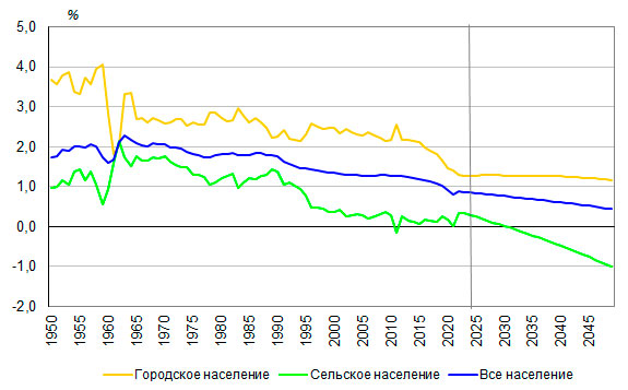 1% в год. Тенденция замедления темпов прироста сельского населения