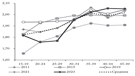 Китая репродуктивного возраста, 2011–2023 гг., чел. (стр.
