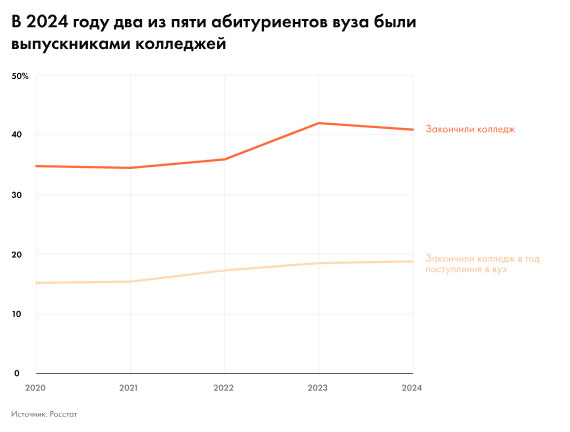В 2024 году 37% абитуриентов вузов имели диплом СПО. У выпускников